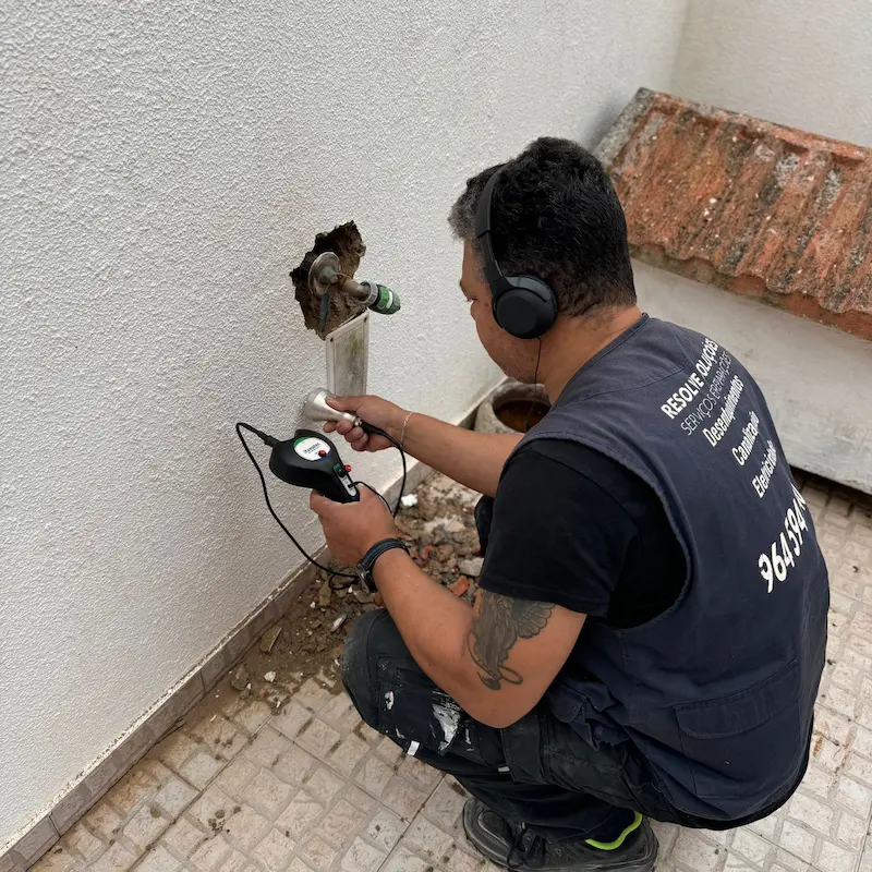 O técnico da Resolve Soluções desloca-se ao local e realiza um diagnóstico profissional com equipamento especializado. Utilizamos câmaras de inspeção CCTV, detetores acústicos e termografia para identificar o problema sem necessidade de obra destrutiva.